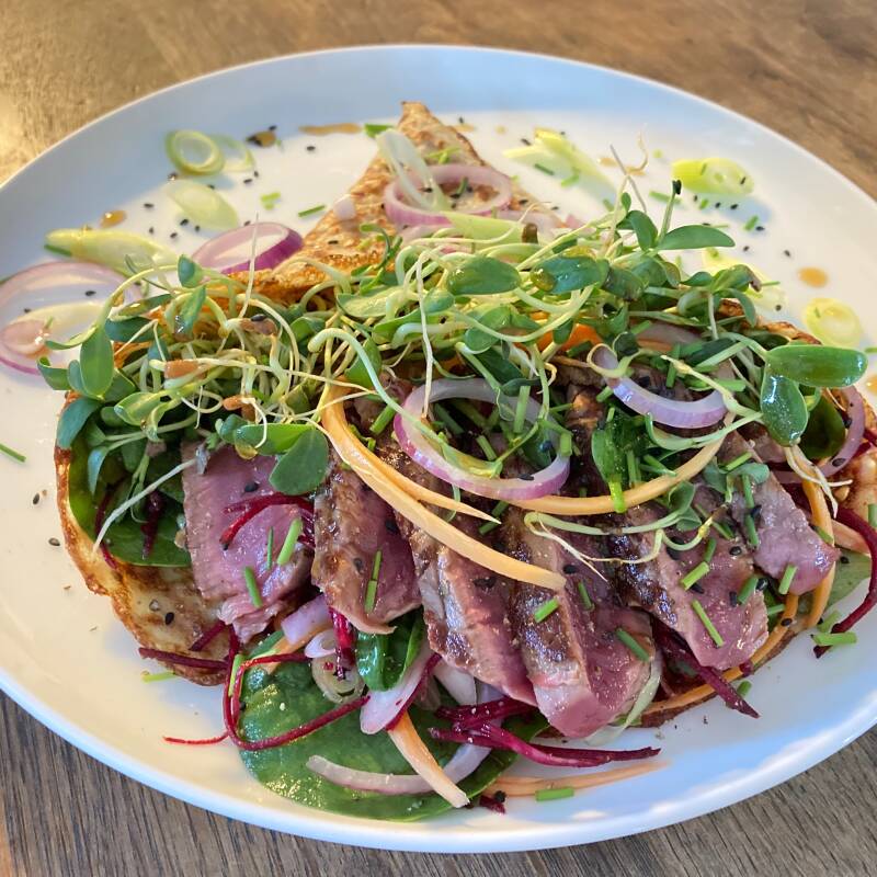 I absolutely love this combo, steak and a salad in a great jacket.